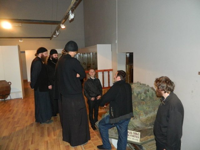 სტუმრები უცხოეთიდან ჩვენი თანამემამულე, მოძღვარი, მამა გაბრიელი (ჟღენტი) ქობულეთშ მყოფ (ცხოელ)ი სასულიერო დასის წარმომადგენლებთან / დედა დიოდორა (გერმანია), მამა ტარსიზაოსი (აშშ), მორჩილი ლუკა (რუსეთი) და მამა დამასკინოზი (შვეიცარია) / ერთად გვეწვია მუზეუმში. სტუმრებს მეგზურობას უწევდა მე-2 საჯარო სკოლის მოსწავლე გიორგი ქათამაძე და მხატვარი ზაზა ცენტერაძე. სასულიერო დასის წარმომადგენელთა სტუმრობა, მუზეუმში მიმდინარე ანბანთქებისადმი მიძღვნილი კვირეულის ფარგლებში დაიგეგმა. სტუმრები ნახეს მუზეუმის მუდმივმოქმედ ექსპოზიციებს, დაათვალიერეს პერიოდული საგამოფენო სივრცე, გაეცნენ მუზეუმში დაცულ ხელნაწერებსა და სიწმინდეებს. გაეცნენ უშუალოდ ხელოვანთა (ავტორთა) მოსაზრებებს, ბატონ ვაჟა ვერულიძისა და ბატონ ზაზა ცენტერაძის შემოქმედების ირგვლივ. გადავიღეთ სტუმრობის ამსახველი სამახსოვრო ფოტოები. გამოითქვა მოსაზრება, მუზეუმის მიერ, სტუმრებისათვის შედგენილი სახელდახელო მარშუტით, გავაცნოთ, როგორც ნივთიერი კულტურის, ასევე ბუნების ძეგლები.